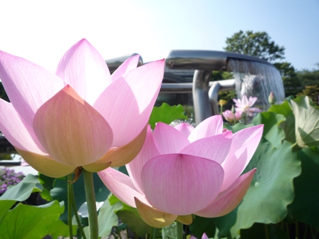 んで、蓮の群生地もすごいけど、みずの森の施設内も入ってすぐ沢山の鉢植えの蓮&睡蓮がお出迎えしてくれるこのステキさ。