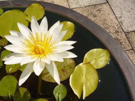 蓮と睡蓮と桔梗が咲いててキレイなお庭なのに