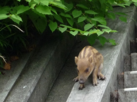 行く途中ロープウェー乗り場のすぐそばにウリボウがいたΣ(・ω・;|||