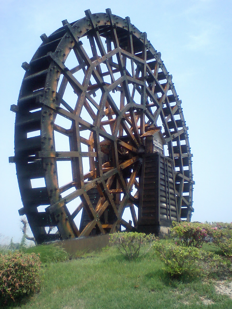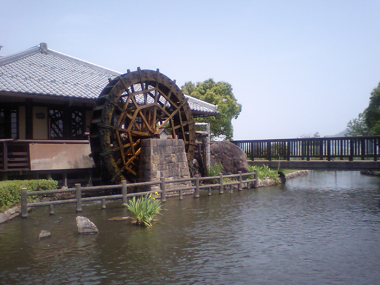 行く途中で大きな水車を発見!!